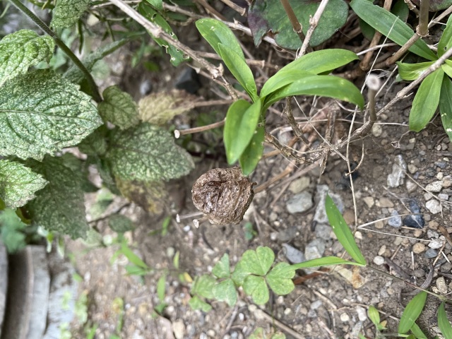 ダルクの前の紫陽花に赤ちゃんカマキリとカマキリの卵を発見しました!!